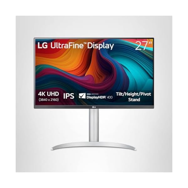 LG 27UP650K-W 27-inch Ultrafine 4K UHD (3840 x 2160) IPS Computer Monitor, 60Hz, 5ms, DisplayHDR 400, Reader Mode, Flicker Safe, HDMI, DisplayPort, Tilt/Height/Pivot Adjustable Stand, White