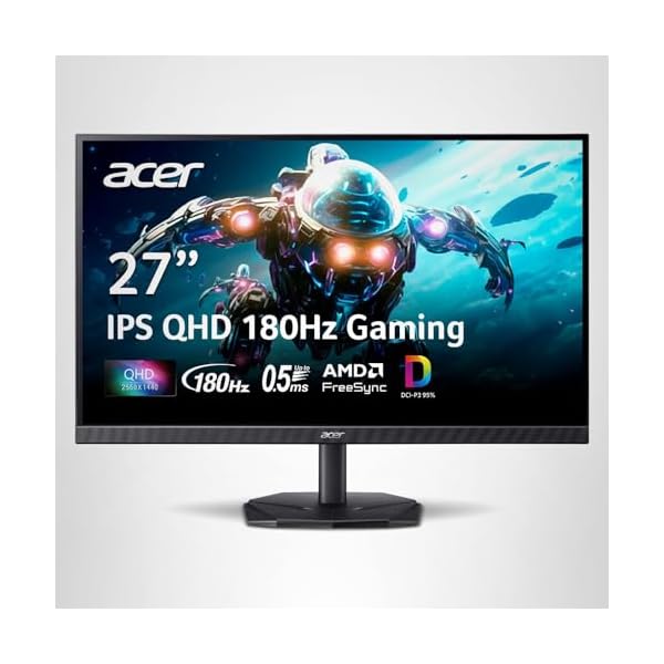 acer Nitro 27 Inch QHD 2560 x 1440 IPS Gaming Monitor | AMD FreeSync | Up to 180Hz Refresh | Up to 0.5ms | DCI-P3 95% | HDR 10 Support | One Display Port 1.2 & Two HDMI 2.0 | KG271U N3bmiipx