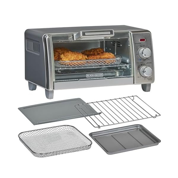 BLACK+DECKER Crisp ‘N Bake Air Fry Countertop Convection Toaster Oven, Medium Capacity, 4-Slice, 5-in-1, Fits 9” Pizza, 30-Min Timer, Bake, Broil, Air Fry, Toast, Keep Warm, Stainless Steel