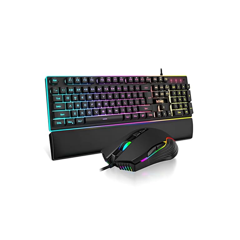 RedThunder K10 Wired Gaming Keyboard and Mouse and Wrist Rest Combo, RGB Backlit, Mechanical Feel Anti-ghosting Keyboard + 7D 7200 DPI Mice+Soft Leather Wrist Rest 3 in 1 PC Gamer Accessories(Black)