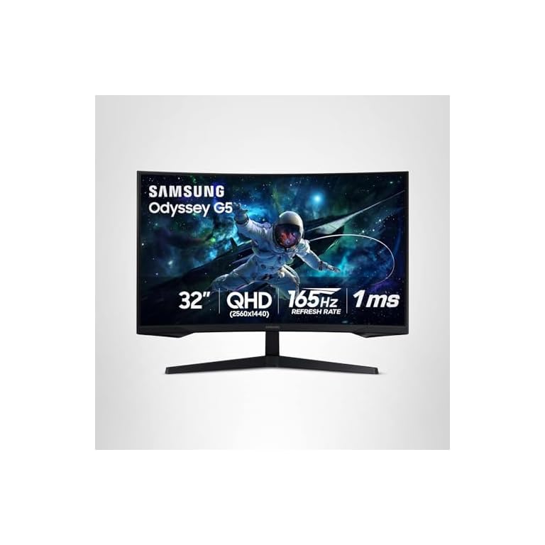 SAMSUNG 32″ Odyssey G55C Series QHD 1000R Curved Gaming Monitor, 1ms(MPRT), HDR10, 165Hz, AMD Radeon FreeSync, Eye Care, Glare Free, Sharp Resolution LS32CG550ENXZA