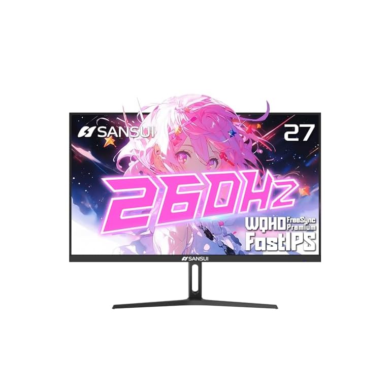 SANSUI Gaming Monitor 27″ 1440p 260hz/240hz WQHD 2K – Fast IPS 1ms FreeSync Premium 丨DCI-P3 98% 丨sRGB130% 丨HDR10 丨2×DisplayPort 1.4丨2×HDMI2.0 PC Gaming Monitor with Crosshair