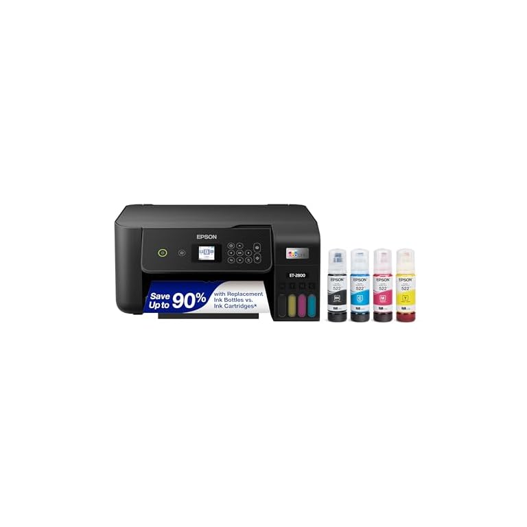 Epson EcoTank ET-2800 Wireless Color All-in-One Cartridge-Free Supertank with Scan and Copy, The Ideal Basic Home Printer – Black