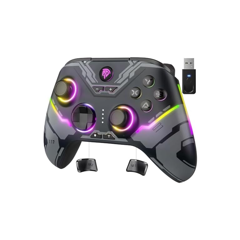 EasySMX X15 Wireless PC Controller with Hall Effect Joysticks & Triggers, RGB Lighting, 2 Back Buttons, 1000mAh Battery, Bluetooth Game Controller for Windows PC, Steam, Switch & Android