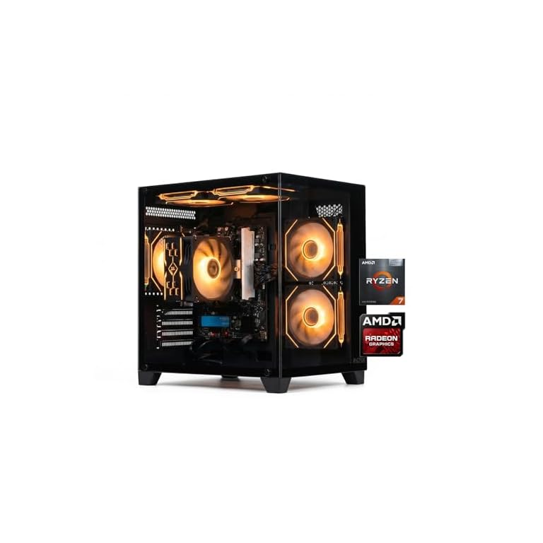 ALCPOK Gaming PC Desktop, AMD Ryzen 7 5700G 3.8GHz, 16GB DDR4 3200MHz RAM, 1TB NVMe SSD, 550W Bronze Power Supply, ARGB Fans,Tower Computer for Office,Photo Editing