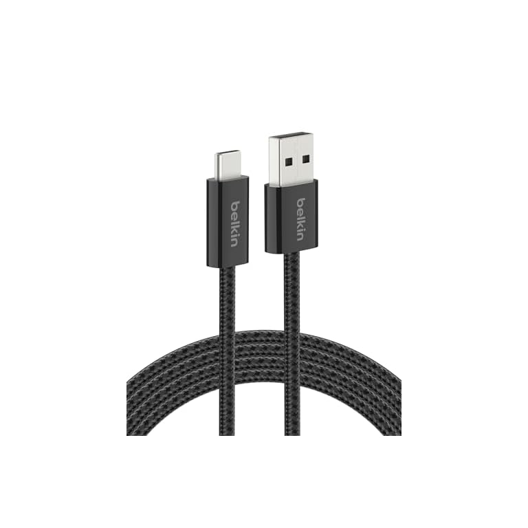 Belkin USB A to USB C Cable, 6.6ft, 15W – Type C Charger, iPhone Charger Cord, Soft, Braided, Flexible for iPhone 17 & 16, Galaxy S25, Pixel 10, iPad Pro, Airpods Pro, Switch & More – Black