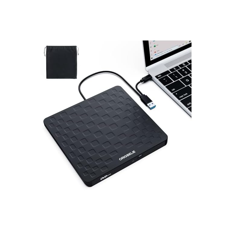 ORIGBELIE External CD DVD Drive for Laptop, USB 3.0 Type-C Ultra Slim 13mm DVD Player Portable CD DVD +/-RW Drive CD Burner Reader Writer Recorder for Desktop PC Windows 11/10/8/7 Linux Mac OS (Black)