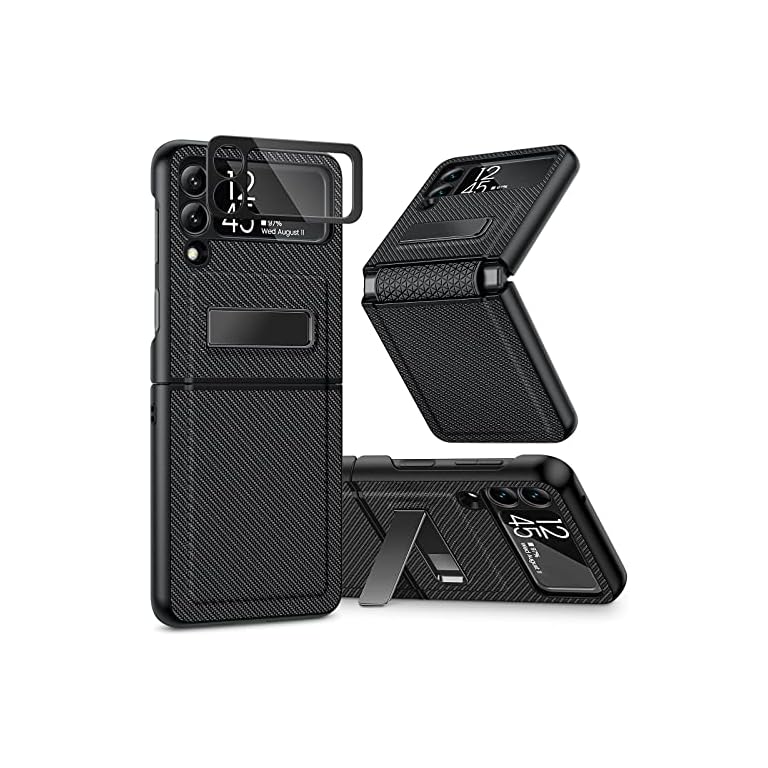 Caka Compatible for Galaxy Z Flip 3 5G Kickstand Case, Z Flip 3 Case with Camera Protector Hinge Protection Wireless Charging Cover for Samsung Galaxy Z Flip 3 (Carbon Fiber Black)