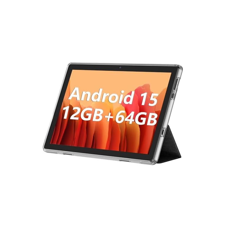 ECOPAD 10.1 Inch Tablet, Android 15 Tablets 12GB(4+8) RAM / 64GB ROM / 1TB SD Card Expansion, 1280×800 IPS HD Touchscreen, 6000mAh Battery, Bluetooth 5.0, Dual Cameras, GMS, Dual Band WiFi, Black