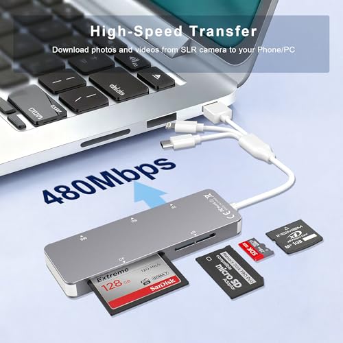 480Mbps Data Transfer: Achieve rapid file transfers at speeds up to 480Mbps, perfect for photographers and videographers handling large videos and images. Quickly move content from memory stick pro duo adapter to your iPhone, iPad, computer, or Android device without delays.