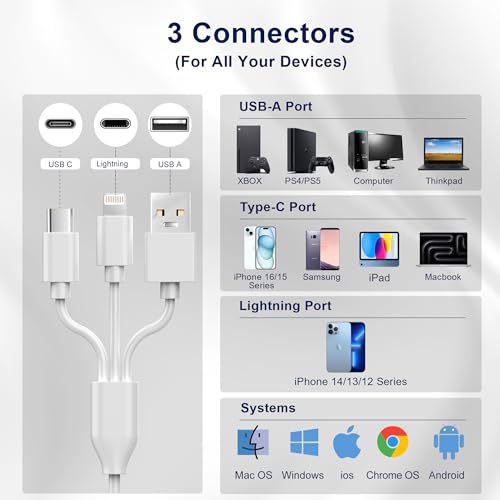 3-in-1 Connectivity for All Devices: Equipped with Lightning, USB C, and USB A ports, this SD card reader effortlessly connects to iPhones, iPads, Android devices, PCs, and Macs. The 15cm cable design prevents port blocking and ensures hassle-free data transfer across all platforms.