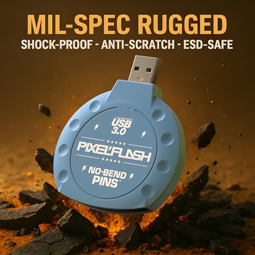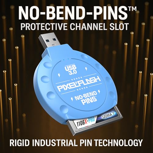 PixelFlash CF Card Reader (Blue) – Compact Flash Memory Card Adapter with USB 3.0, 5GB/s File Transfer, No-Bend Pins, Supports UDMA-7, Anti-Slip & Anti-Scratch, Compatible with Most Brands & OS