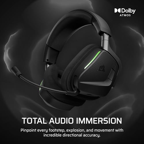 VOID v2 MAX WIRELESS unlocks a new dimension of audio immersion in your favorite games on Xbox, PC, and more with custom-tuned 50mm drivers and Dolby Atmos® Spatial Audio. Simultaneous 2.4GHz wireless and Bluetooth® connectivity allows you to seamlessly swap connections, or listen to both at the same time. 70 hours* of long-lasting battery life and comfortable breathable memory foam ear cushions let you game longer. The omni-directional microphone features NVIDIA Broadcast® technology** to reduce unwanted background noise. On-ear controls let you mute, adjust volume, and control audio, while iCUE software lets you tune your sound and customize RGB lighting. *Up to 70 hours via 2.4GHz wireless with RGB off. **Requires a compatible NVIDIA GeForce RTX™ graphics card.