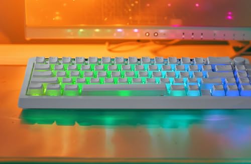 【Refreshing color scheme and OEM Profile PBT keycaps】We have adopted a refreshing color scheme that blends well with the workplace.R66 features OEM Profile with different height PBT keycaps. PBT is more durable and oil resistant than ABS. PBT keycaps are more durable and oil resistant than ABS, won’t shine over time like ABS keycaps do, and retain their true color for longer periods of time.