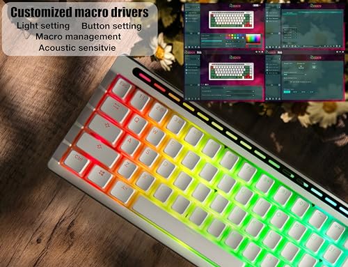 R66 65% Voice-Activated Hot Swap RGB Triple Mode(2.4Ghz/Bluetooth 5.0/Wired) Wireless Top Gaming Keyboard,Knob Control Mechanical Keyboard, PBT Keycaps (Glacial-White-Linear Switch)