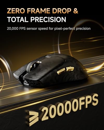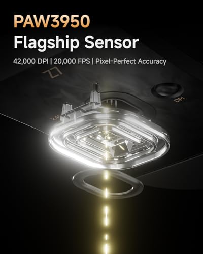 Ultimate performance: EWEADN Z7 gaming mouse is equipped with PixArt PAW3950 sensor (supports TOG) and Nordic N54L15 MCU, delivering up to 42,000 DPI and 20000 FPS tracking. It captures every subtle movement with precision and responds to commands instantly. Ultimate performance: EWEADN Z7 gaming mouse is equipped with PixArt PAW3950 sensor (supports Track-On-Glass) and Nordic N54L15 MCU, delivering up to 42,000 DPI and 20000 FPS tracking. It captures every subtle movement with precision and responds to commands instantly, Designed for esports and professional FPS gamers.