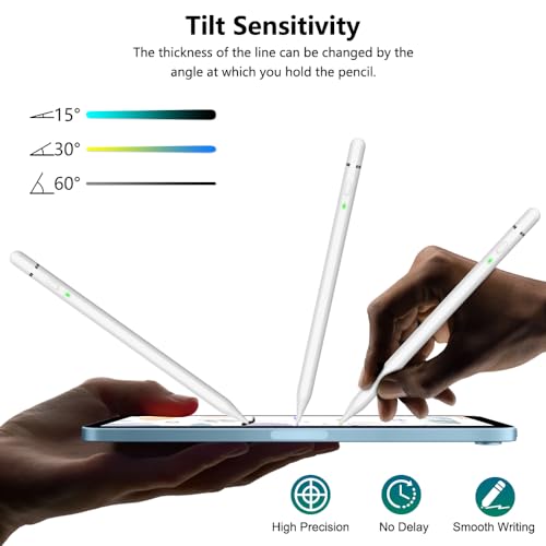 Pencil (1st Generation) for iPad 2018-2025, Stylus Pen for iPad with 10X Fast Charge, Tilt Sensitivity, Palm Rejection, Drawing Pen Compatible with ipad 6~11th, Mini 5/6, Air 3~5/M2 M3, Pro 11/12.9/M4