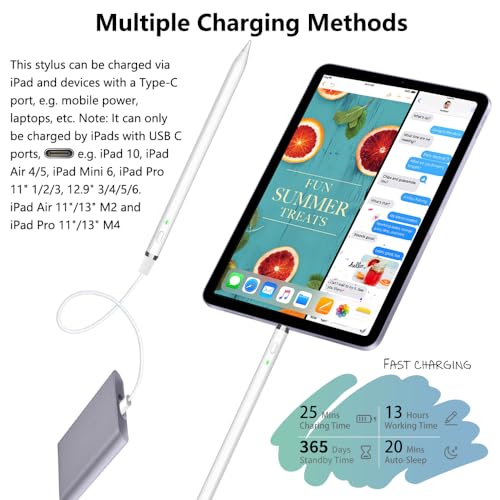 USB C FAST CHARGING – With the same charging method as pencil 1st generation for iPad, KIROSA stylus pen for ipad can be charged not only directly from your ipad, but also from other devices with USB-C pork, e.g. laptops or power banks. Fast Type-C charging in 25 minutes. Up to 13 hours of continuous use. Standby time up to 365 days. When lying idle for more than 20 minutes, the stylus pen for ipad will automatically power off.