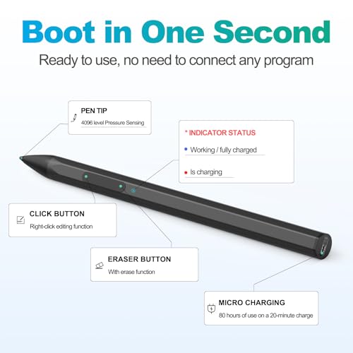 【Easy to Use】This stylus pen is easy to use and does not require any special software or Bluetooth connection. Simply press the button to activate it and use the shortcut keys for eraser and right mouse button functions.