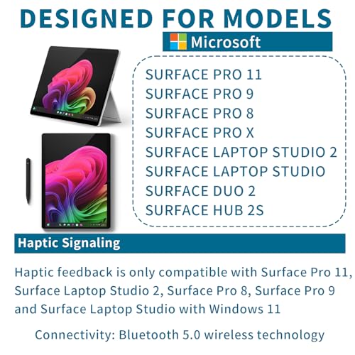 Haptic Signaling: Haptic feedback is only compatible with Surface Pro 11, Surface Laptop Studio 2, Surface Pro 8, Surface Pro 9 and Surface Laptop Studio with Windows 11