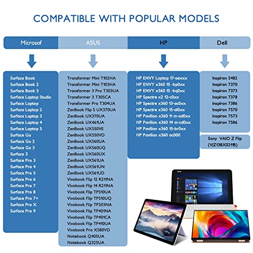 Compatible Models:Trakxy digital pen compatible with microsoft surface Pro 3/4/5/6/7/7+/8/9/X,Surface Laptop 1/2/3/4/5, Surface go 1/2/3, Surface Book 1/2/3, Surface Studio 1/2/2+, Micro Surface 3, Please refer to the main figure 6 for other models that can be matched:ASUS Trabformer, DELL Inspiron, SONY VAIO Z Flip, HP Envy Etc
