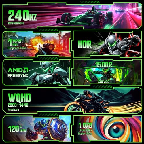 Excellent gaming performance: 240Hz High Refresh Rate, MPRT 1ms Response Time, Freesync, 1500R Curvature, Blacklevel, Crosshair, Timer, Multiple Game Mode.