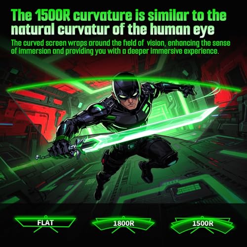 SANSUI 32-Inch Curved Gaming Monitor WQHD 2560 x 1440 180Hz Curved 1500R -Fast VA,1ms(OD), HDR, 300nits, sRGB 125%, DCI-P3 95%, FreeSync, HDMI x2, DP1.4x2(DP Cable Included)