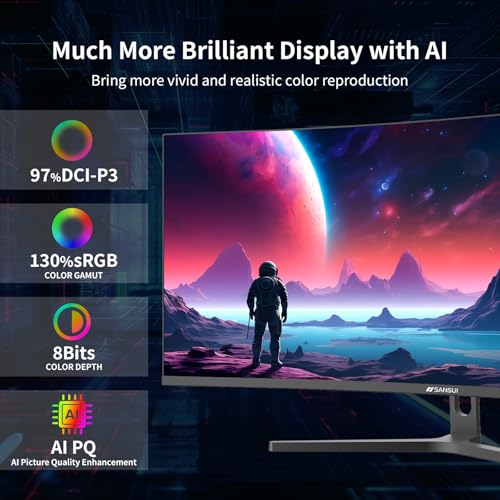 SANSUI 27 Inch Curved 160Hz Gaming Monitor, 1500R Curved Computer Gaming Monitor FHD 1080P, 4000:1, 110% sRGB, FPS/RTS, 1Ms MPRT|FreeSync|HDR|Low Blue Light|HDMI DP| VESA Support, HDMI Cable Incl.