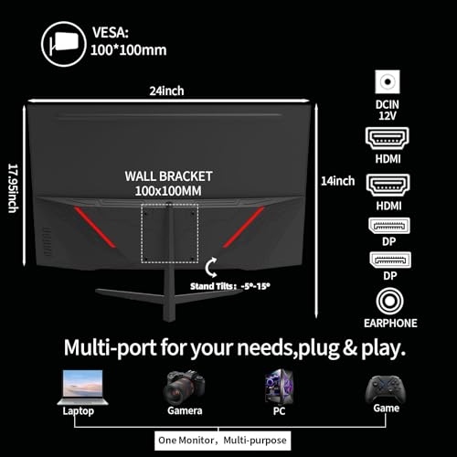 240hz gaming monitor 27 inch display, 1ms response time (GTG), and sleek 3-sided frameless design offer minimal bezel distraction for the ultimate seamless multi-monitor setup. 280hz monitor 27 inch is also VESA compatible (100×100mm)for wall mounting.The monitor supports tilt adjustment from -5° to -15°(±2°), you can freely adjust the screen angle according to your sitting posture and usage needs.