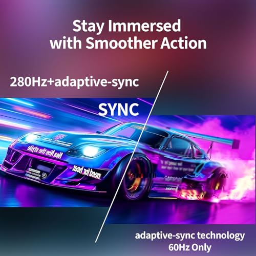 Powerful connectivity – 280hz gaming monitor connect multiple devices to the monitor with 2x HDMI2.0 ports and 2x DisplayPort 1.4 port. FreeSync technology virtually eliminates screen tearing, stutter and latency, giving you the exceptional gaming experience.