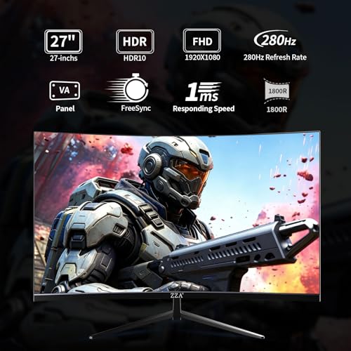 ZZA 27 Inch 280Hz Gaming Monitor,FHD Curved Monitor,240Hz Curved Monitor,1ms Computer Monitor,Eye-Care Display with HDMI,DP,FreeSync,Wall Mountable for Office and Home