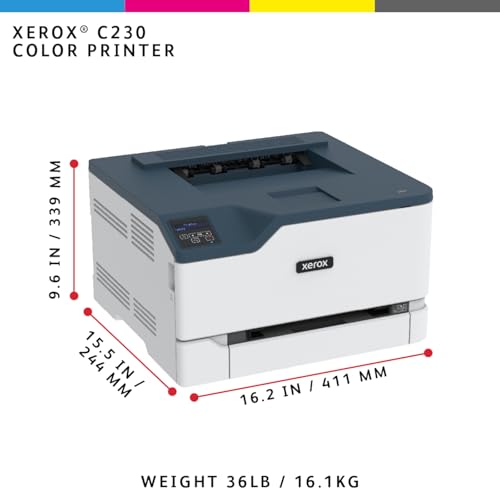 The Xerox C230 Color Printer is built for busy home and small offices that need fast, reliable color printing. It’s easy to set up and ready to go right out of the box. Enjoy features like automatic two-sided printing, a 250-sheet paper tray, and built-in Wi-Fi with Wi-Fi Direct for mobile printing. With speeds up to 24 ppm (Letter), plus a 1 GHz dual-core processor and 256 MB memory, the C230 delivers performance you can count on. Designed for up to 1,500 pages per month, it’s compact, efficient, and sustainable—with EPEAT certification and hassle-free cartridge recycling through the Xerox Supplies Recycling Program.