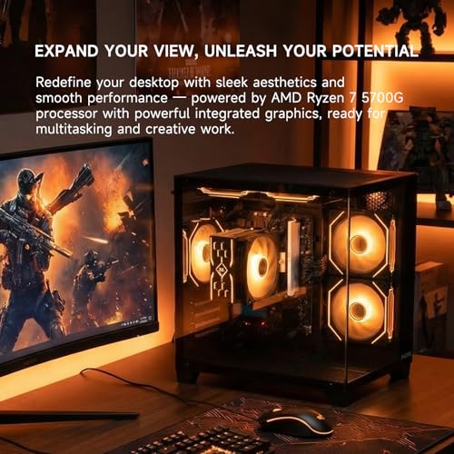 【Powerful 8-Core Processor】Equipped with AMD Ryzen 7 5700G (8 cores, 16 threads, up to 4.6GHz), this desktop delivers exceptional performance for multitasking, video editing, 3D rendering, and daily office work. The integrated Radeon graphics easily handle popular games like League of Legends, Dota 2, and *Counter-Strike 2* at 1080P without a dedicated GPU.