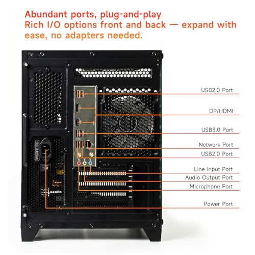 【Upgrade-Ready Design】We’ve included a genuine 550W 80 Plus Bronze power supply with PCIe connectors, so you can easily add a high-performance graphics card later. The motherboard also features extra RAM and M.2 slots, giving you flexibility to upgrade as your needs grow.