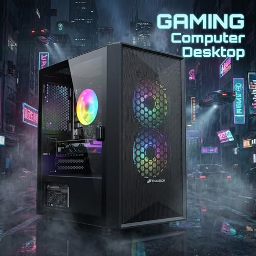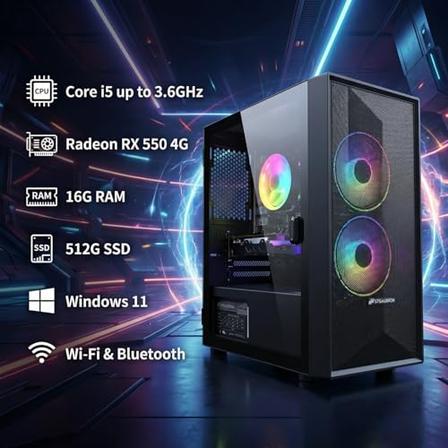 STGAubron Prebuilt Gaming PC Desktop, Radeon RX 550 4G, Intel Core i5 up to 3.6GHz, 16G RAM, 512G SSD, WiFi 6, BT 5.0, RGB Fan x2, Windows 11 Home