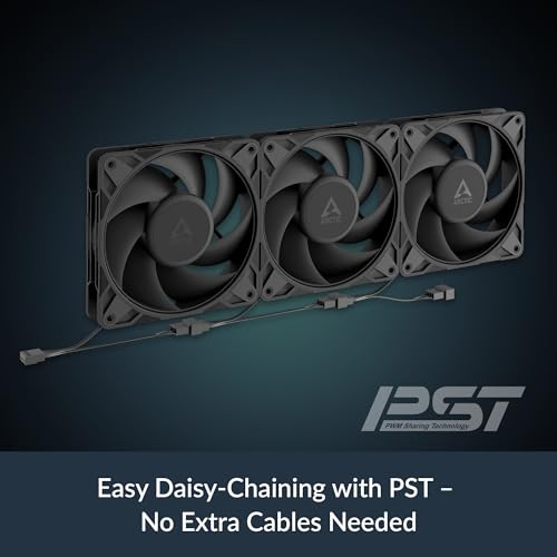 ARCTIC P12 Pro PST – 5 Pack – Powerful Premium Fan, 120 mm PWM Fan with Y-Cable Splitter, 600-3000 RPM, 0 RPM <5% PWM, Fluid Dynamic Bearing, 4-Pin – Black