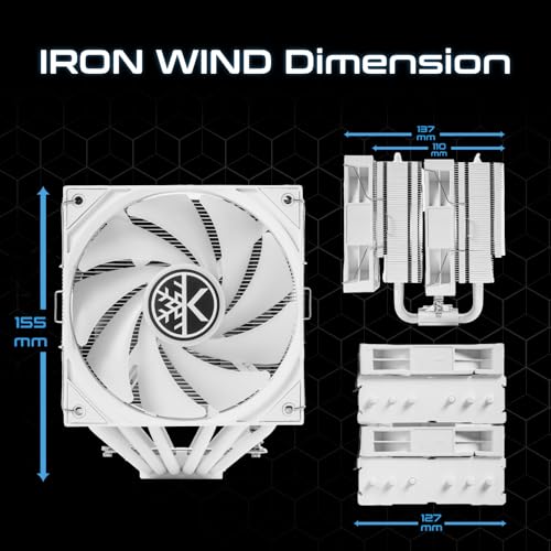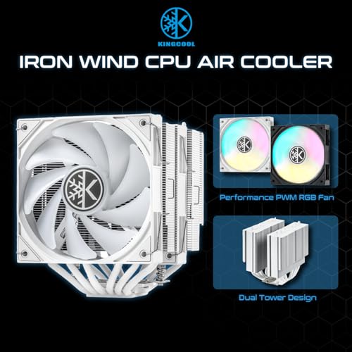KINGCOOL Iron Wind 120 ARGB CPU Air Coolor, 6 Heat Pipes & Dual Towers, Dual 120mm PWM Fans, 1800 RPM Speed, ARGB Lighting, PC Cooler for AMD AM4 AM5/ Intel LGA 1851/1700, White