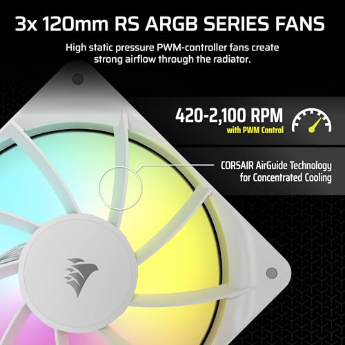 RS120 ARGB Fans: RS ARGB fans create strong airflow and high static pressure, with easy ARGB control via a compatible motherboard. CORSAIR AirGuide technology and Magnetic Dome bearings ensure great cooling performance and low noise