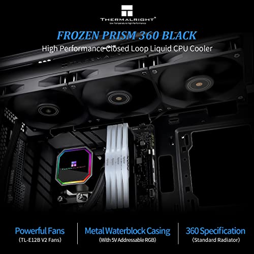 Thermalright Frozen Prism 360 Black Liquid CPU Water Cooler with 120mm PWM Fan,360 Black Cold Row Specification,Integrated Water-Cooler Heatsink for AM4/AM5,Intel LGA1700/1150/1151/1200/2011/1851