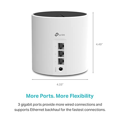 More Gigabit Ports – Each Deco X55 has 3 Gigabit Ethernet ports(6 in total for a 2-pack) and supports Wired Ethernet Backhaul for better speeds. Any of them can work as a Wi-Fi Router