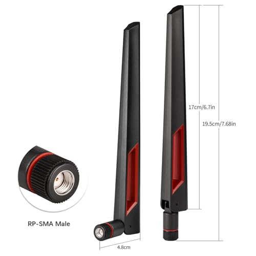 Superbat WiFi 6 6E Tri-Band Antenna 2.4GHz 5GHz 6GHz RP-SMA Male Omni-Directional Antenna – 2-Pack for Router PC Desktop PCIe WiFi Card IP Security Cameras USB Adapter