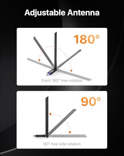 ★【𝗨𝗹𝘁𝗿𝗮-𝗙𝗮𝘀𝘁 𝗪𝗶𝗙𝗶 𝟲】 – Experience up to 38% faster 5GHz and 43% faster 2.4GHz connections with this USB WiFi Adapter for Laptop, compared to AC600 adapters.Ideal for 4K streaming, competitive gaming, and video conferencing without lag or buffering.