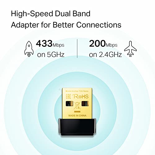 TP-Link Nano AC600 USB WiFi Adapter(Archer T2U Nano)- 2.4G/5G Dual Band Wireless Network Transceiver for PC Desktop, Travel Size, Supports Windows (11,10, 8.1, 8, 7, XP/Mac OS X 10.9-10.14)