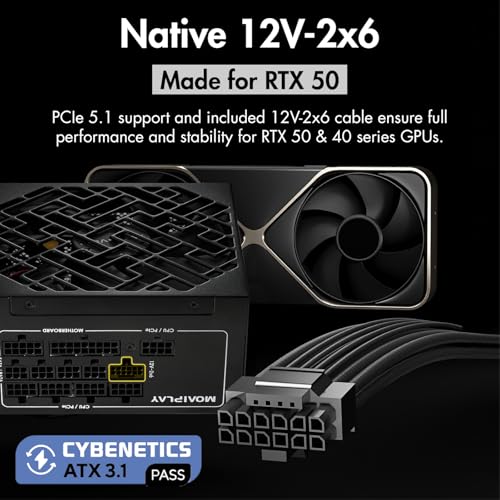 ATX 3.1 & PCIe 5.1 Certified: Future-proof your build. Fully compliant with Intel ATX 3.1 and PCIe 5.1 for seamless compatibility with NVIDIA RTX 40/50 Series GPUs. Includes a native 12V-2×6 cable delivering up to 600W of direct power—eliminating melting adapters and safely handling 200%+ transient power spikes.