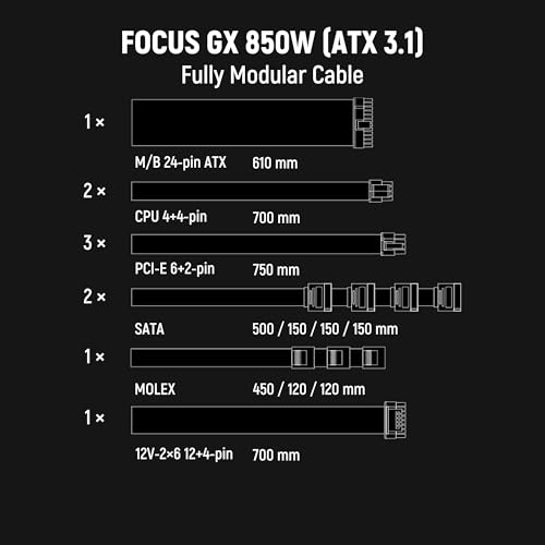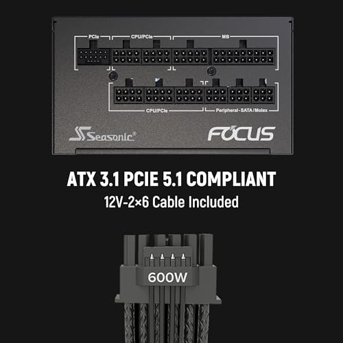 Seasonic Focus GX 850W Power Supply ATX 3.1 PCIe 5.1 (12V-2×6) 10 Years Warranty Cybenetics Platinum Fully Modular RTX 5080 AMD RX 9000 Ready