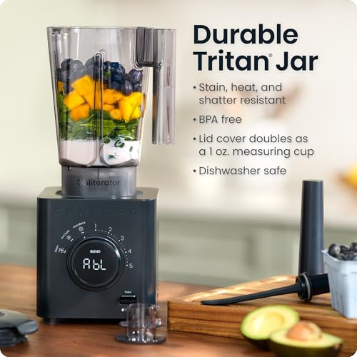 HIGH BLENDING CAPACITY: With a 48 oz shatter-resistant Tritan blending jar, the Obliterator has enough space to make shakes and smoothies for everyone. The durable construction even allows for blending hot liquids with the lid cover removed (cover with a towel to avoid excess splatter.)