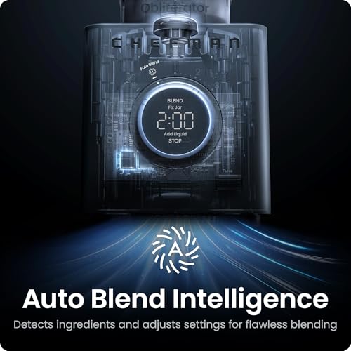 Chefman Obliterator 48 oz Countertop Blender for Smoothies, 1380W Motor to Crush Ice, Nuts, and Frozen Fruit with Stainless Steel Blade, Auto Blend Function, Includes 20 oz Travel Jar