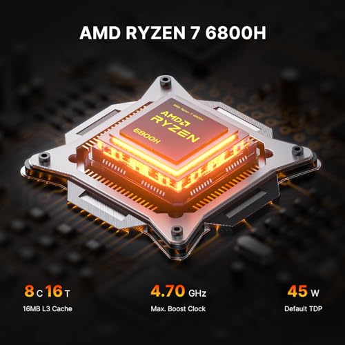 Versatile for Work & Play – BOSGAME P5 Mini PC powered by the AMD Ryzen 7 6800H (8C/16T, up to 4.7GHz) CPU and Radeon 680M iGPU, the ryzen 7 6800H mini computer delivers outstanding performance for work and creativity. From smooth 4K video editing, 3D rendering, and music production and light gaming, it ensures smooth, responsive, and efficient operation—perfect for professionals and casual users alike