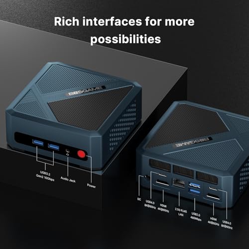 Plug and Play – Ready to use right out of the box with pre-installed Win 11 Pro OS. Just connect a monitor, keyboard, and mouse! Equipped with 2x USB 3.2 Gen 2, 2x USB 2.0, 2x HDMI 2.0, 2x USB4.0, 1x 2.5G LAN port, and a 3.5mm audio jack. Stay effortlessly connected with WiFi 6E and Bluetooth 5.2 for fast data transfer and seamless device pairing.