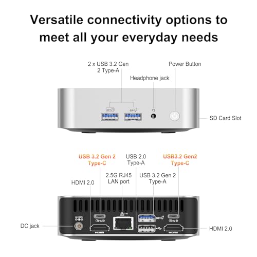 【Superb Networking, All set to connect】 The GEEKOM A5 pro offers comprehensive connectivity with multiple ports, including 2 HDMI and 2 Type-C, supporting up to four 4K displays and multiple high-performance peripherals. It also comes with a VESA mount for easy installation. Armed with 2.5Gbps Ethernet and WiFi 6, the A5 pro offers fast and reliable internet connection on both wire and wireless, allowing you to enjoy lag-free online gaming, 5K video streaming, and real-time VR.